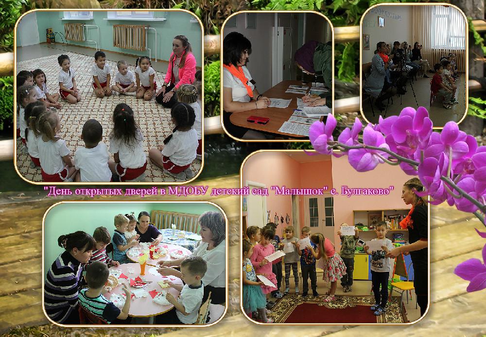 В детском саду «Малышок» с. Булгаково 27 ноября 2018 г. традиционно прошел «День открытых дверей». В рамках мероприятия гости смогли поприсутствовать на организованной образовательной деятельности. Для гостей была показана театральная постановка «Доверчивый ёжик», в которой участвовали воспитанники старшей группы «Затейники», организована экскурсия по ДОУ. Посетители детского сада в этот день получили индивидуальные консультации учителя-логопеда и старшей медицинской сестры. Во второй половине дня гостям представилась возможность понаблюдать за организацией дополнительных платных образовательных услуг.
